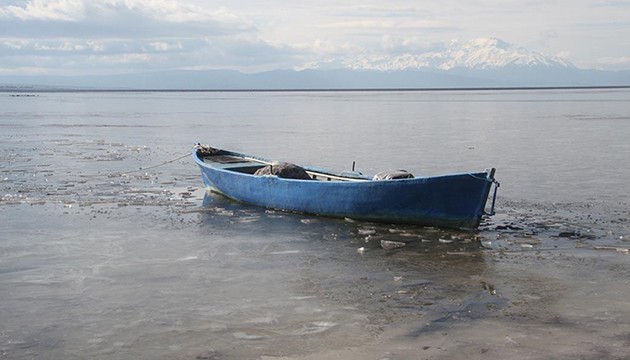 Beyşehirli bazı balıkçılar, faaliyetlerine ara vererek teknelerin etrafındaki buzları kırmaya çalıştı.