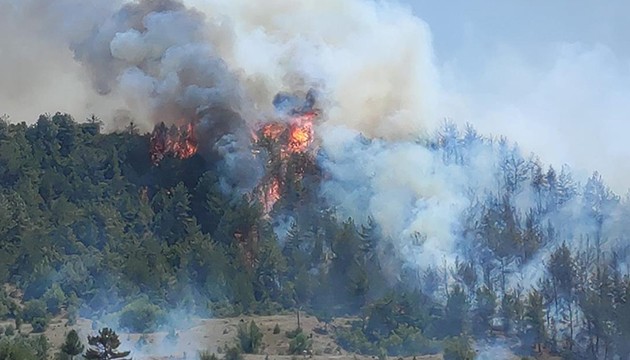 Ekipler, yangını karadan ve havadan müdahaleyle kontrol altına almaya çalışıyor.