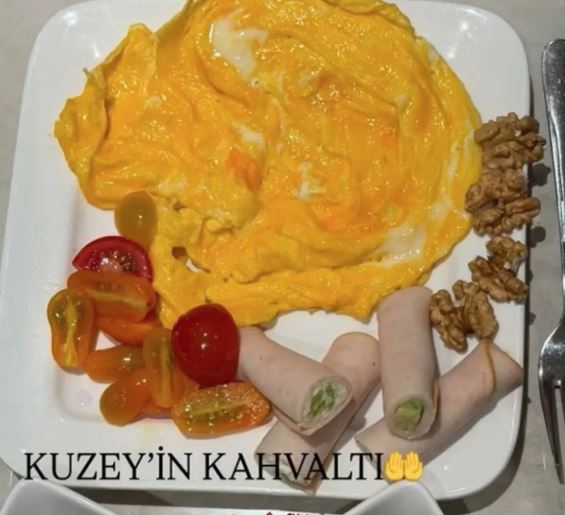 Geceyi şiş karnıyla noktalayan Şıkel, kahvaltı tabağını paylaştı. Oğlu Kuzey ve kendi tabağını yan yana koyarak aradaki farkı gözler önüne serdi.