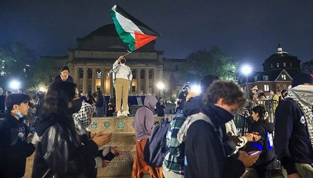 New York Times'a göre, sayıları onları geçmeyen öğrenciler ana girişi kapattı, "Özgür Filistin" sloganları attı.