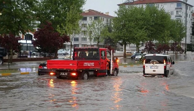 Dolu ile etkili olan sağanak nedeniyle kent merkezindeki çok sayıda cadde ve sokakta su birikintileri oluştu.