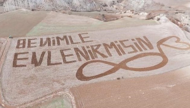 Örübağ köyünde çiftçilik yapan Cihat Ayva, aynı köyde yaşayan Ayşe Nur Candan'a jest yapmak için tarlasını sonsuzluk ve kalp işaretleri oluşturacak şekilde sürdü ve "Benimle evlenir misin" yazdı.