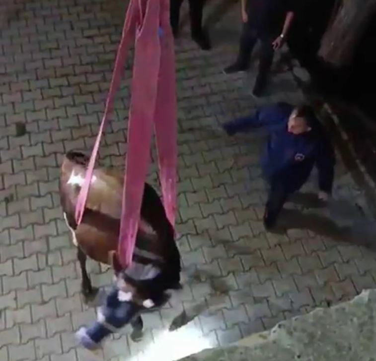 Bölgeye gelerek çalışma başlatan itfaiye ekipleri ineği yaklaşık bir saat süren çalışmayla vinç yardımıyla sağlıklı bir şekilde damdan indirildi.
