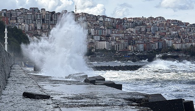 Yüksekliği zaman zaman 7 metreye ulaşan dalgalar, Zonguldak Limanı'ndaki mendireği aştı.
