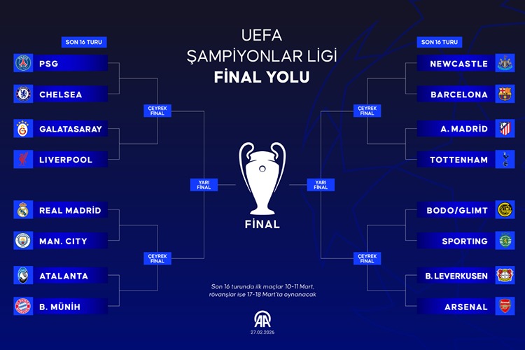 Turnuvada son 16 turu maçları 10-11 ve 17-18 Mart tarihlerinde oynanacak.