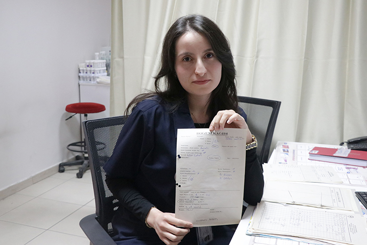 Erciyes Üniversitesi (ERÜ) Tıp Fakültesi Hastanesi'nde 2002'de doğan Coşkun, doğumunu yaptıran doktor Açmaz'ın yanında internlik stajını sürdürüyor.