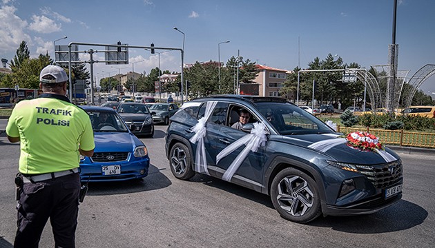 Ekipler, megafonla düğün konvoylarındaki sürücü ve vatandaşlara trafik kurallarına uymaları konusunda uyarıda bulunup, evlenen çiftlere de mutluluk diledi.