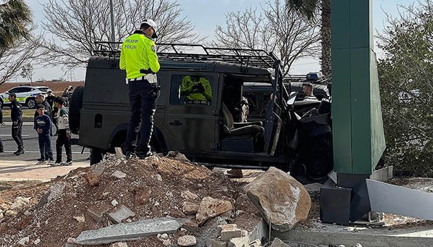 Özel harekat polislerini taşıyan araç, Şanlıurfa-Mardin karayolunun 5. kilometresinde kaldırıma çıktıktan sonra reklam panosuna çarptı.