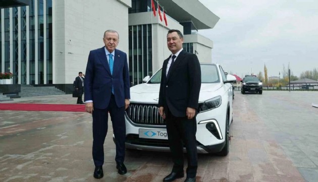 Sarayın bahçesinde bir süre otomobili inceleyen ve sohbet eden Erdoğan ile Caparov, daha sonra Togg önünde fotoğraf çektirdi.