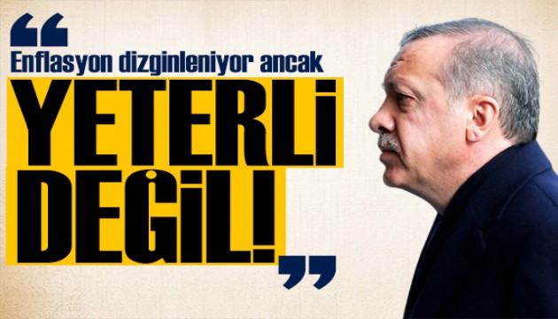 Enflasyonla mücadeleye yönelik de mesajlar veren Erdoğan, "Enflasyonla mücadelede kayda değer mesafe aldık. Enflasyon yavaş yavaş dizginlenmeye başladı ancak düşüş yeterli değil. Biraz daha sabredecek ve çok daha güzel neticeleri göreceğiz" dedi.