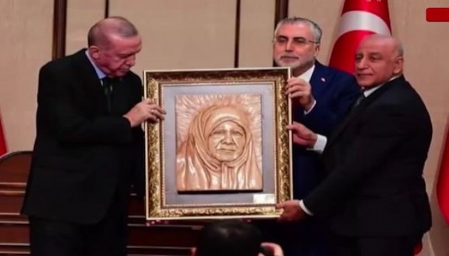 Programda kendisine hediye edilen eserler içerisinden bir tek annesinin portresini kabul eden Erdoğan duygusal anlar yaşadı.