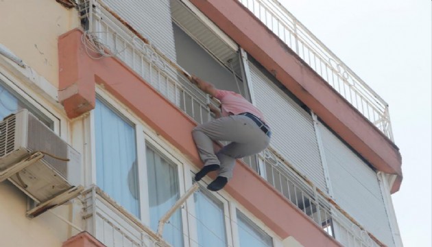 Boşanmak istemeyen Ender E., tartışmanın büyümesi üzerine dairenin balkonuna çıkarak kendisini demir korkulukların diğer tarafına sarkıttı.