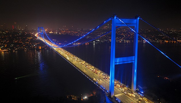Bu kapsamda, önemli günlerde renk ve ışık gösterileriyle aydınlatılan İstanbul'un simge köprülerinden FSM Köprüsü, Türk Gastroenteroloji Derneğinin talebi doğrultusunda kolon kanserinin simge rengi maviyle aydınlatıldı.