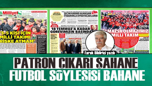 Hürriyet, Milliyet ve Posta gazeteleri, geçen çarşamba günü bir tam sayfalarını Türkiye Futbol Federasyonu Başkanı Mehmet Büyükekşi ile söyleşiye ayırmışlardı.