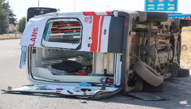 Elazığ'ın Yazıkonak beldesi Organize Sanayi Bölgesi kavşağında meydana gelen kazada ambulans taklalar atarak durabildi.