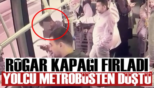 Araç kamerasınca kaydedilen görüntülerde, metrobüste orta kapıya dayanan yolcunun kapının kırılmasıyla yola düşmesi yer aldı.