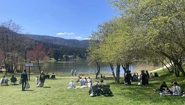 Günübirlik yerli ve yabancı tatilciler, göl çevresinde yürüyüş yaptı, iskelelerde fotoğraf çektirdi, piknik alanlarında açan sarı ve beyaz papatyalar arasında vakit geçirdi.