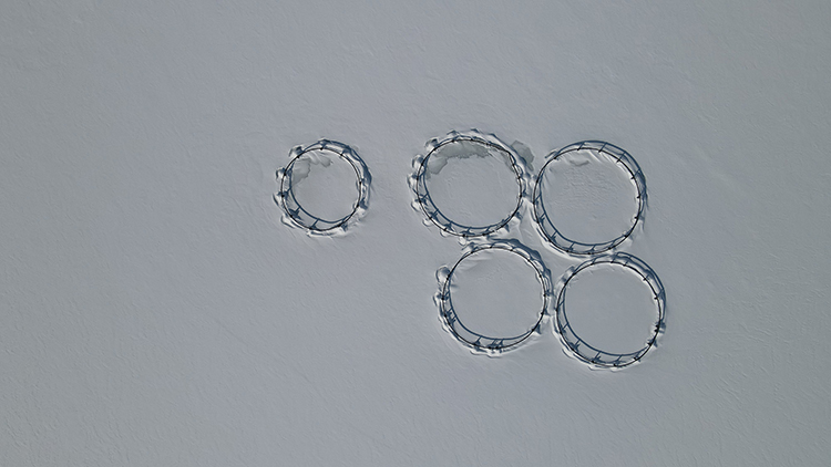 Yaz mevsiminde yaklaşık 48 bin dekarlık tarım arazisini sulamak için kullanılan, aynı zamanda kafes balıkçılığı da yapılan barajda, balık kafesleri buz kütlesinin altında kaldı.