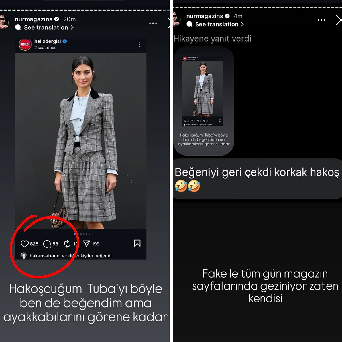 Paris Moda Haftası'nda boy gösteren bir başka isim olan Tuba Büyüküstün'ün Paris kombinine kalp bırakan Sabancı, beğenisinin fark edildiğini anlayınca kalbi anında geri aldı.