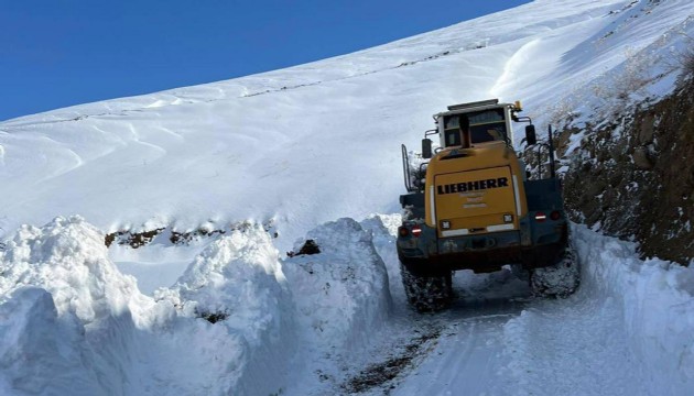Ekipler, kar kalınlığının 1 metreyi bulduğu Aytepe Üs Bölgesi yolunun açılması için çalışmalarını sürdürüyor.