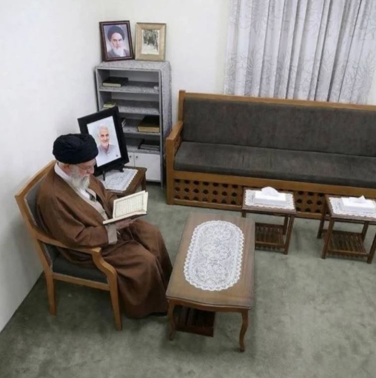 İran medyası tarafından paylaşılan son fotoğrafta, Hamaney'in Kur'an-ı Kerim okuduğu görülüyor.
