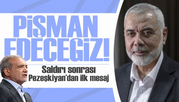 Pezeşkiyan, X sosyal medya hesabından yaptığı açıklamada, "İran, Kudüs Şehidi İsmail Haniye'nin yasını tutuyor." ifadesini kullandı.Meclis'te kendisi için düzenlenen yemin töreninde bir araya geldiği Haniye'yi "Filistin direnişinin cesur yoldaşı" olarak adlandıran Pezeşkiyan, "İki onurlu millet olan İran ve Filistin arasındaki bağ eskisinden güçlü olacak. Mazlumların direnişi her zamankinden daha kuvvetli şekilde savunulacaktır." değerlendirmesinde bulundu.Saldırının İran'ın toprak bütünlüğünü de hedef aldığını belirten İran Cumhurbaşkanı, "İran, toprak bütünlüğünü, izzetini ve şerefini savunacak ve işgalci teröristleri alçakça eylemlerinden dolayı pişman edecektir." ifadelerini kullandı.Pezeşkiyan, açıklamasının sonunda Kur'an- Kerim'den "Şüphesiz Allah, aziz ve intikam sahibidir." ayetini paylaştı.