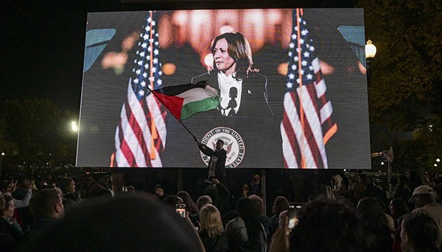 Harris'in konuşmasına devam ettiği sırada yaklaşık 300 kişiden oluşan kalabalık grup, Filistin ve Gazze lehine sloganlar attı ve Biden-Harris yönetimini protesto etti.