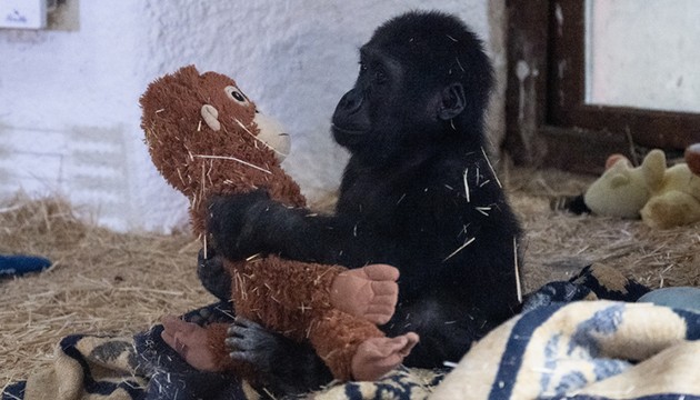 Nesli tükenmek üzere olan "gorilla gorilla" cinsi yavru hayvanat bahçesindeki cam odada gözetim altında tutuluyor.