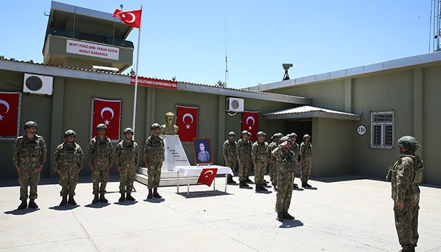 Suriye sınırında konuşlu Şehit Piyade Sözleşmeli Onbaşı Faruk Gezen Hudut Karakol Komutanlığında vatani görevini yapan askerler, elleri tetikte, gözleri hedefte 7 gün 24 saat güvenliği tesis ediyor.