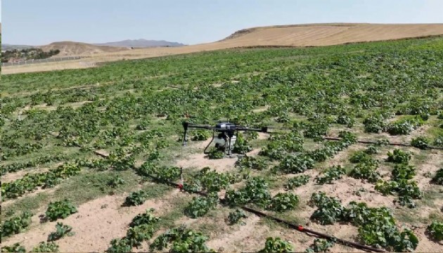 Kırıkkale'nin Bahşılı ilçesine bağlı Karaahmetli köyünde çiftçilik yapan Hasan Tarık Bozkoyun, tarım arazilerini ilaçlama konusunda modern teknolojiden faydalanıyor. Bozkoyun, kabak ektiği arazisini dron kullanarak ilaçlamayı tercih ediyor. 100 dönümlük alanı traktörle ilaçlandığında yüzde 7 oranında bir verim kaybı yaşadıklarını belirten Bozkoyun, her 100 dönümünde 150 bin liralık kaybı önlediklerini söyledi.