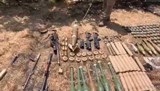 "40 milimetre bombaatar silahı, Doçka makineli tüfek ve namlusu, ?68 taarruz tipi el bombası, ?10 savunma el bombası, ?7 sis bombası, ?5 el yapımı el bombası, 13 antipersonel mayını, 8 bombaatar mühimmatı, 7 antitank roket mühimmatı, 23 antipersonel roket mühimmatı, 5 havan mühimmatı, 122 milimetre top mühimmatı, 30 adet 20 milimetre top mühimmatı, ?4 hassas başlık, 7,62 milimetre PKMS makineli tüfek namlusu, monte hamili, keskin nişancı tüfeği susturucusu, çok sayıda tıbbi malzeme ve gıda malzemesi."