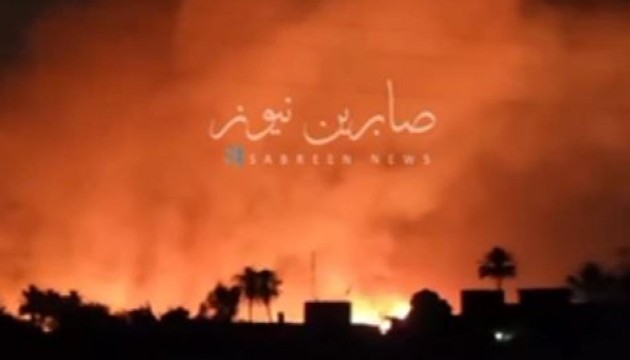 Saldırısı sonrası bölgede büyük çapta yangın çıktığı görüldü.