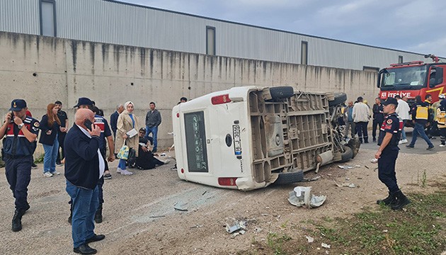 Mevlüt Karakurt yöneütimindeki 16 J 3016 plakalı işçi servisi minibüsü, İnegöl Hamzabey Organize Sanayi Bölgesi'nde devrildi.