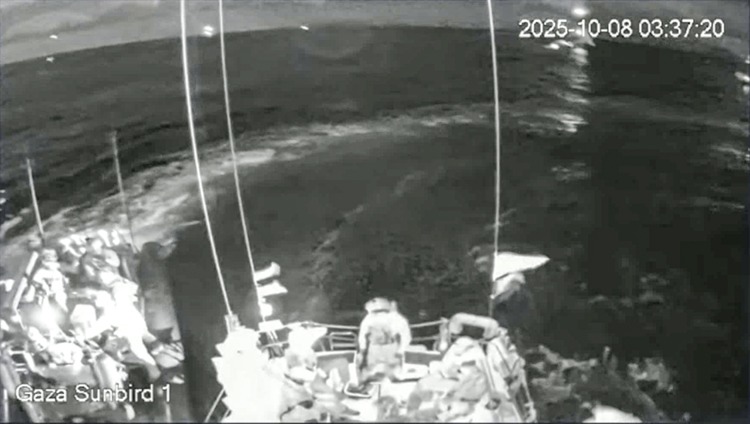 Filonun basın bilgilendirme grubundan yapılan açıklamada, "Gemilerimiz yasa dışı kuşatma altında. Kameralar devre dışı kaldı ve gemilere askeri personel çıktı. Gemiyle iletişimimiz koptu." ifadeleri kullanıldı.