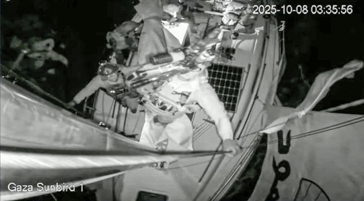 Filodaki gemilerin etrafının İsrail donanmasına ait hücumbotlarla sarıldığı görülen canlı yayında, gemilerdeki katılımcıların telefonlarını denize attıkları görüntüler de ekranlara yansıdı.