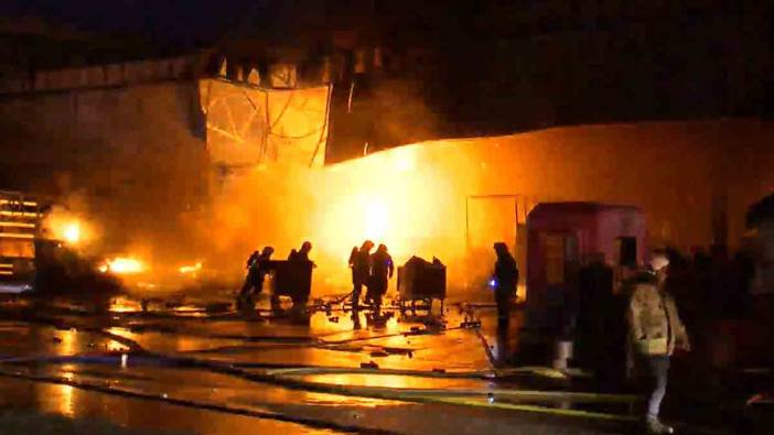 Görüntülerde, yangın esnasında patlama seslerinin gelmesi, alevlerin iş yerini ve çevresini sarması ve iş yerinden siyah dumanların yükselmesi yer aldı.