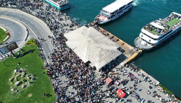 Ramazan Bayramı’nın ikinci gününde İstanbul'da bulunan yerli ve yabancı turistler Eminönü’ne akın etti. 9 günlük bayram tatilini değerlendirmek isteyen yerli ve yabancı turistler Anadolu Yakası'na geçmek ve Boğaz turu yapmak isteyince Eminönü İskelesi'nde yoğunluk oluştu. Vapurları kullanmak isteyen yerli ve yabancı turistlerin iskelede oluşturduğu yoğunluk havadan görüntülendi. İskele önünde oluşan uzun kuyruk ise görüntülere yansıdı.