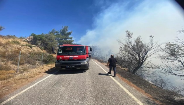 Yangına İzmir Orman Bölge Müdürlüğü ekipleri 5 uçak, 11 helikopter ile havadan 21 arazöz 7 su ikmal ve 2 dozer ile karadan müdahaleye başlarken, itfaiye ekipleri de söndürme çalışmalarına destek verdi.