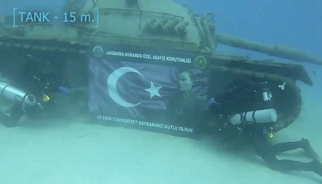 Jandarma Genel Komutanlığının sosyal medya hesaplarında yayımlanan klipte, SAK timlerinin 29 Ekim Cumhuriyet Bayramı kutlamaları kapsamında, Antalya Kaş'ta düzenlediği Elektronik Kapalı Devre Dalış Sistemi ile 60 metre dalış faaliyetine yer verildi.