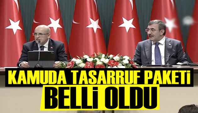 Cumhurbaşkanı Yardımcısı Cevdet Yılmaz, Hazine ve Maliye Bakanı Mehmet Şimşek ile Cumhurbaşkanlığı Külliyesi'nde “Kamuda Tasarruf ve Verimlilik Paketi”ni kamuoyuyla paylaşıyor.