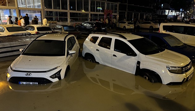 Bazı ev ve iş yerlerini su basarken 100. yıl Mahallesi’nde araçlar su altında kaldı.