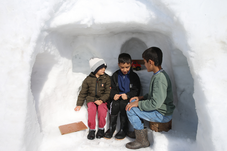 Korucak köyünde yağan karın ardından köy halkından Yasin Bozdemir, köyde çocuklar için farklı bir alan oluşturmaya karar verdi.