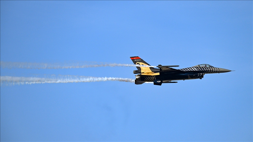 Kayseri 12. Hava Ulaştırma Ana Üs Komutanlığı'ndan havalanan SOLOTÜRK, Recep Tayyip Erdoğan Millet Bahçesi üzerinde gösteri uçuşu yaptı.