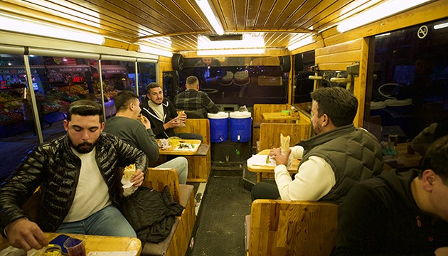 İçine mangal, masa, sandalye ve buzdolabı yerleştirdiği midibüsünü kebapçı dükkanına dönüştüren Kara, haftanın 6 günü aracını Refik Cesur Bulvarı'na park ederek müşterilerine hizmet vermeye başladı.