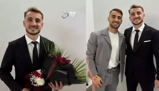 Sosyal medya hesabından mutlu haberi duyuran Kerem'e, kız isteme töreninde Galatasaraylı futbolcu Yunus Akgün eşlik etti.