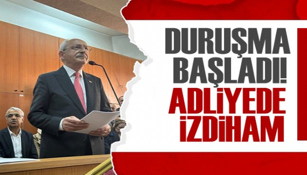 Kılıçdaroğlu, duruşma öncesinde Ankara Adliyesi’ne geniş bir destek grubuyla geldi. Adliye önünde toplanan kalabalık, "Hak, hukuk, adalet" sloganlarıyla Kılıçdaroğlu’na destek verdi.
