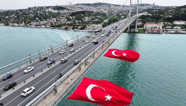 İstanbul'da renkli kareler ortaya çıkarken bir hazırlık da köprüde yapıldı. 15 Temmuz Şehitler Köprüsü'ne dev Türk bayrakları asıldı.