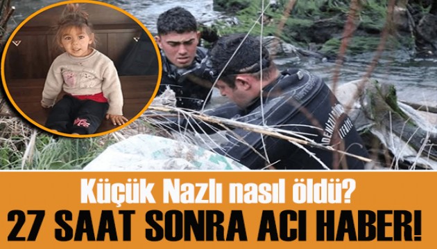Aramaların 27. saatinde, küçük Nazlı’nın cansız bedeni, kaybolduğu noktaya yaklaşık 5 kilometre mesafede, Aksu Deresi’nde dalgıçlar tarafından bulundu. Küçük kızın bedeni, dere içindeki ağaç dallarına takılı haldeydi.