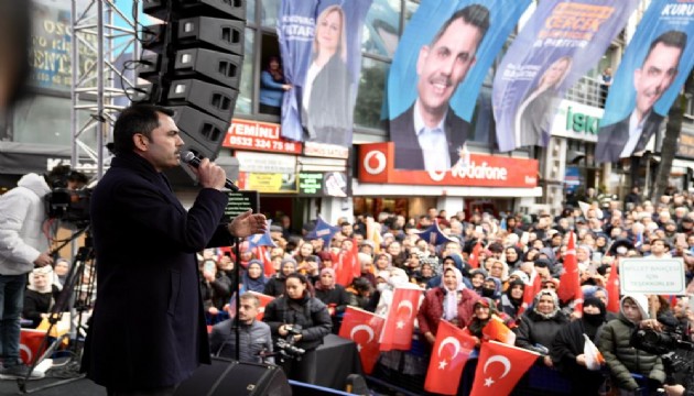 İstanbul’un ulaşımla ilgili sorunlarından bahseden Murat Kurum, “Metrolar çalışmaz hale geldi. Her gün, İETT otobüsleri yanıyor. Taksi meselesi günden güne kangrene dönüşüyor. Halk otobüslerimize bakım bile yapamıyorlar. Öyle arka odalarda balya balya para saymayı biliyorlar, esnafın üç kuruş alacağını ödemiyorlar. Ben geçen otobüs esnafıyla beraberdim. Esnafın 1-2 milyon alacakları var. Sonra da yolda otobüs arıza yapıyor, yanıyor. Sen esnafın parasını ödemezsen otobüse nasıl bakacak? Sen İstanbul’un kaynaklarını balya balya kule yaparsan bu adam bu otobüsü nasıl çalıştıracak? Bunların İstanbul diye bir dertleri yok. Bu şehirde yeterli taksi yok. Çünkü bunlar taksiyi hizmet olarak görmüyor, taksiyi rant üretecek bir araç olarak görüyorlar. İstanbul’da ne varsa hepsini rant olarak görüyorlar. Kurmuş oldukları makamları mevkileri peşkeş çekmeye, İstanbul’un kaynaklarını kendi gelecekleri için harcamaya çalışıyorlar. İstanbul’un önündeki en büyük engel CHP’li İBB yönetimidir. Bu kardeşiniz, 1 Nisan’dan sonra bu şehrin metro hattını 5 yıl içinde iki katına çıkaracak. Metrobüsü, İstanbul’un bir ucundan diğer ucuna kadar uzatacak. Yapacağımız 122 km’lik tünellerle, bu şehrin trafiğini yerin altına alacağız. Bu şehrin her yerine 250 bin araçlık otoparklar yapacağım” dedi.
