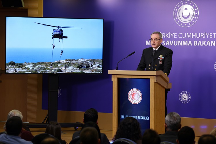 MSB Basın ve Halkla İlişkiler Müşaviri ve Bakanlık Sözcüsü Tuğamiral Zeki Aktürk, bakanlıkta düzenlenen haftalık basın bilgilendirme toplantısında konuştu.